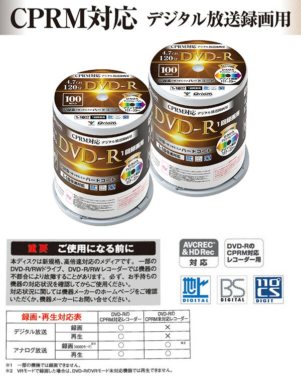 【DVD/HDDレコーダー】デジタル放送をDVDメディアに記録する場合は、著作権保護技術が施されたCRPMに対応したDVDメディアでなければいけない。また、記録モードもVRモードにして、初期化しておかなければならない。
