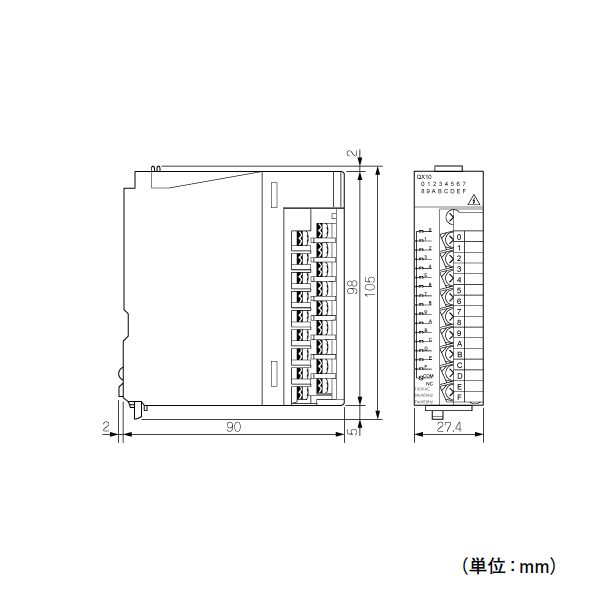 入力形式 DC入力(プラスコモンタイプ) 入力点数 16点 定格入力電圧 DC24V(+20/-15%,リップル率5%以内) 定格入力電流 約6mA 入力ディレーティング なし 入力ON電圧/ON電流 19V以上/4mA以上 入力OFF電圧/OFF電流 11V以下/1.7mA以下 入力抵抗 約3.9kΩ スロット占有数 1 入出力占有点数 16点(I/O割付:高速入力 16点) DC5V内部消費電流 60mA(TYP. 全点ON) 外形寸法 H 98mm W 27.4mm D 90mm 質量 0.20kg ■一般仕様 [使用周囲温度] 0〜55℃ [保存周囲温度] -25〜75℃(システムにAnS/Aシリーズユニットが含まれる場合,-20〜75℃) [使用周囲湿度] 5〜95%RH,結露なきこと(システムにAnS/Aシリーズユニットが含まれる場合,10〜90%RH) [保存周囲湿度] 5〜95%RH,結露なきこと(システムにAnS/Aシリーズユニットが含まれる場合,10〜90%RH) [耐振動] JIS B 3502, IEC 61131-2 に適合 ・断続的な振動がある場合 周波数:5〜8.4Hz,片振幅:3.5mm、周波数:8.4〜150Hz,定加速度:9.8m/s2、掃引回数:X,Y,Z各方向10回 ・連続的な振動がある場合 周波数:5〜8.4Hz,片振幅:1.75mm、周波数:8.4〜150Hz,定加速度:4.9m/s2 [耐衝撃] JIS B 3502, IEC 61131-2 に適合(147m/s2,XYZ3方向各3回) [使用雰囲気] 腐食性ガスのないこと [使用標高] 0〜2000m [設置場所] 制御盤内 [オーバボルテージカテゴリ] II 以下 [汚染度] 2以下 [装置クラス] Class 1